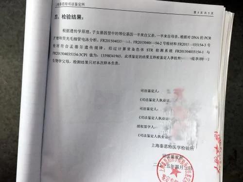 不过,李权说:“孩子是我的。”他提供的亲子鉴定报告显示,受其委托,上海泰思特医学检验所司法鉴定所使用检测DNA遗传标志的方法鉴定亲子关系,结果支持被鉴定人李权与妻子是李泽某的生物学父母。