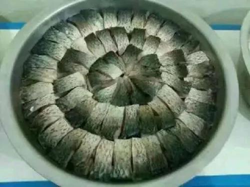 这个是鱼段儿,摆放整齐,鱼表示彬彬有礼,列队齐整(网络图片)