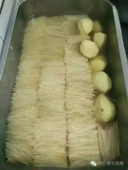 所有的金针菇都一样长,就是土豆削的皮儿去皮太多吧?圆土豆愣给削成棱形的了,看似有点浪费,用菜刀削的?
