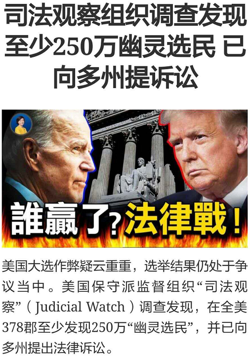所以在肃清大选舞弊之前,是不可能宣布拜登获胜的。