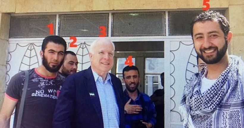 大家可以看看照片,这不是共和党的麦凯恩吗?对于建制派来说,早就不分什么共和党民主党了,他们都是属于民主党一家的,在国内支持奥巴马医保法案,在国外支持战争,目标就是维护华尔街金融集团和军工集团利益,不惜代价保住权力。